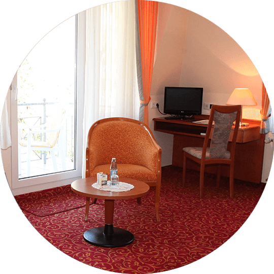 Ein behagliches Ambiente bieten Ihnen unsere 16–23 qm großen Komfort-Einzelzimmer, die in vielen Bereichen barrierefrei zugänglich sind und über einen Balkon verfügen.