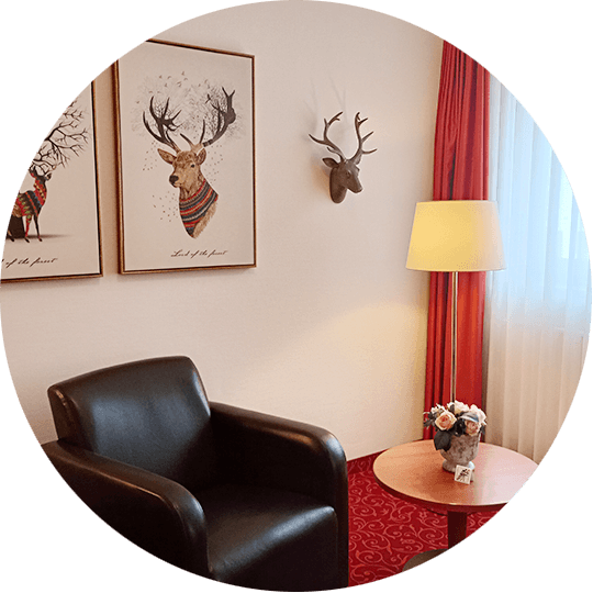 Jede Menge Wohlfühlfläche für einen entspannten Aufenthalt finden Sie in unserer 31 qm großen Suite. Freuen Sie sich auf modernes Ambiente, einen bequemen Sitzbereich, barrierefreien Zugang und einige Extras.
