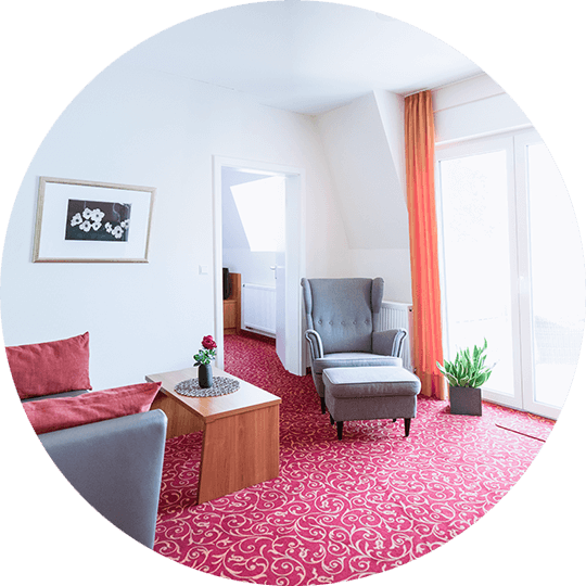 Our 31 square meter Juniorsuite Karl with comfortable seating and several extras is the perfect place for recovery. And the pick of the bunch: The balcony to the garden with a fantastic view over the Tauber river and its green banks, which you can also enjoy from your bed. The room is also suitable for allergy sufferers.